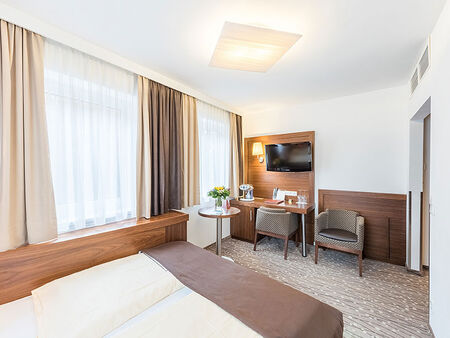 Our smaller, cosy Standard rooms with shower or bath and toilet are equipped with satellite TV with Sky, internet access, hairdryer, safe, radio and minibar. Finnish sauna facilities (open on request from 16:00 until 21:00) and bicycles are available free for the use of our guests. Our guests also have access to our free parking facilities with video surveillance.