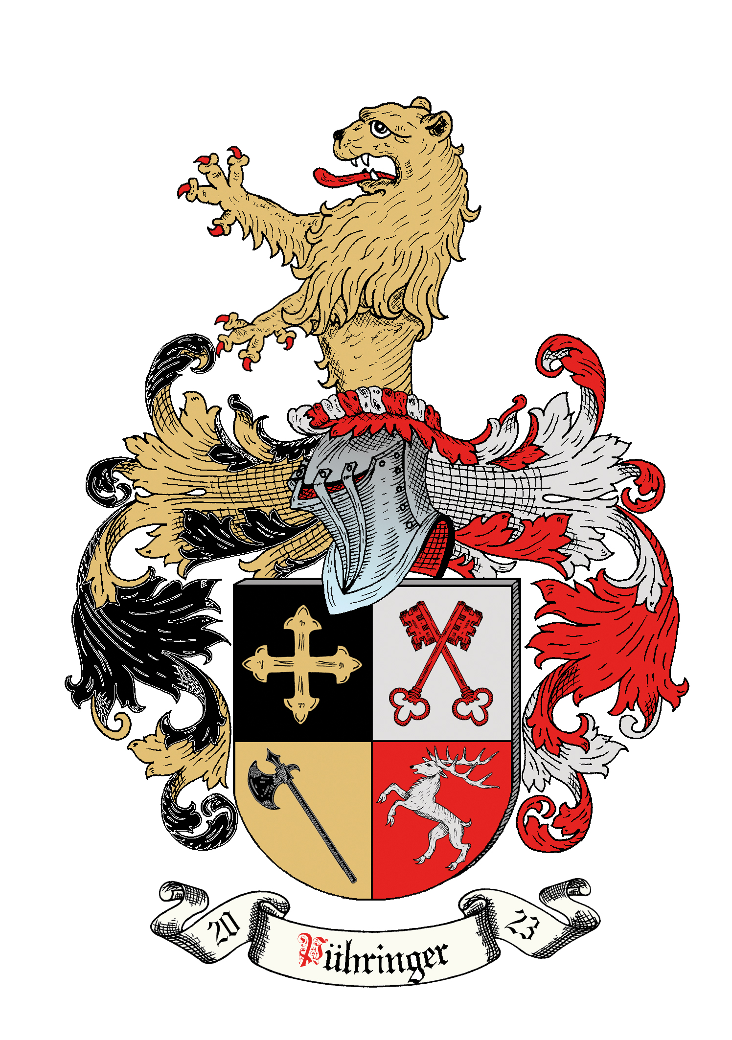 Mit Stolz trägt unsere Familie das österreichische Familienwappen Pühringer, das am 6. Februar offiziell in die Online-Wappenrolle eingetragen wurde. Die Symbole – goldenes Kreuz, roter Schlüssel, Hellebarde und Hirsch – stehen für Werte wie Glaube, Beständigkeit, Stärke und Lebenskraft.